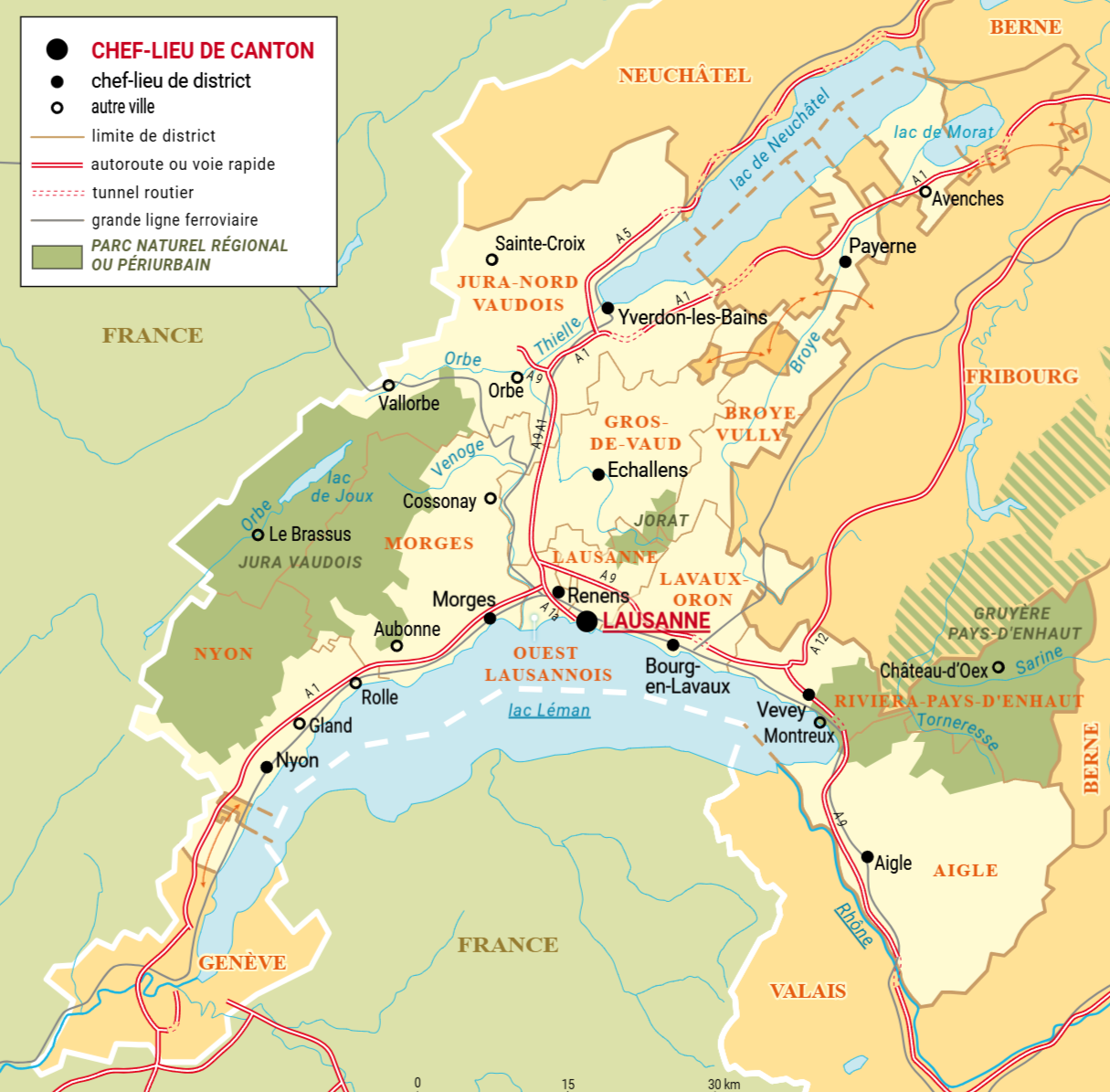 Canton de Vaud : y compris Lausanne, Nyon, Morges et les alentours.